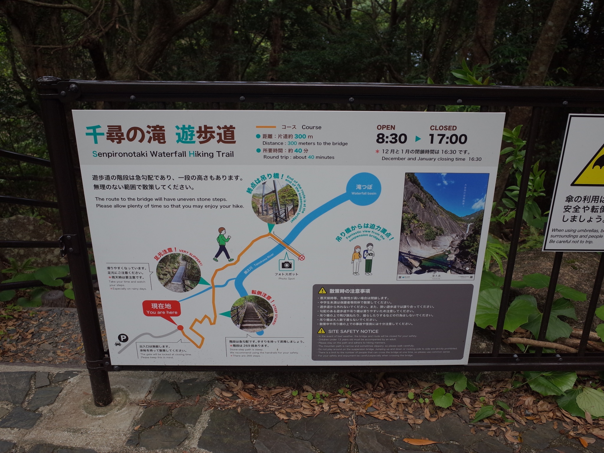 「千尋の滝 展望所はすぐそこ100m」