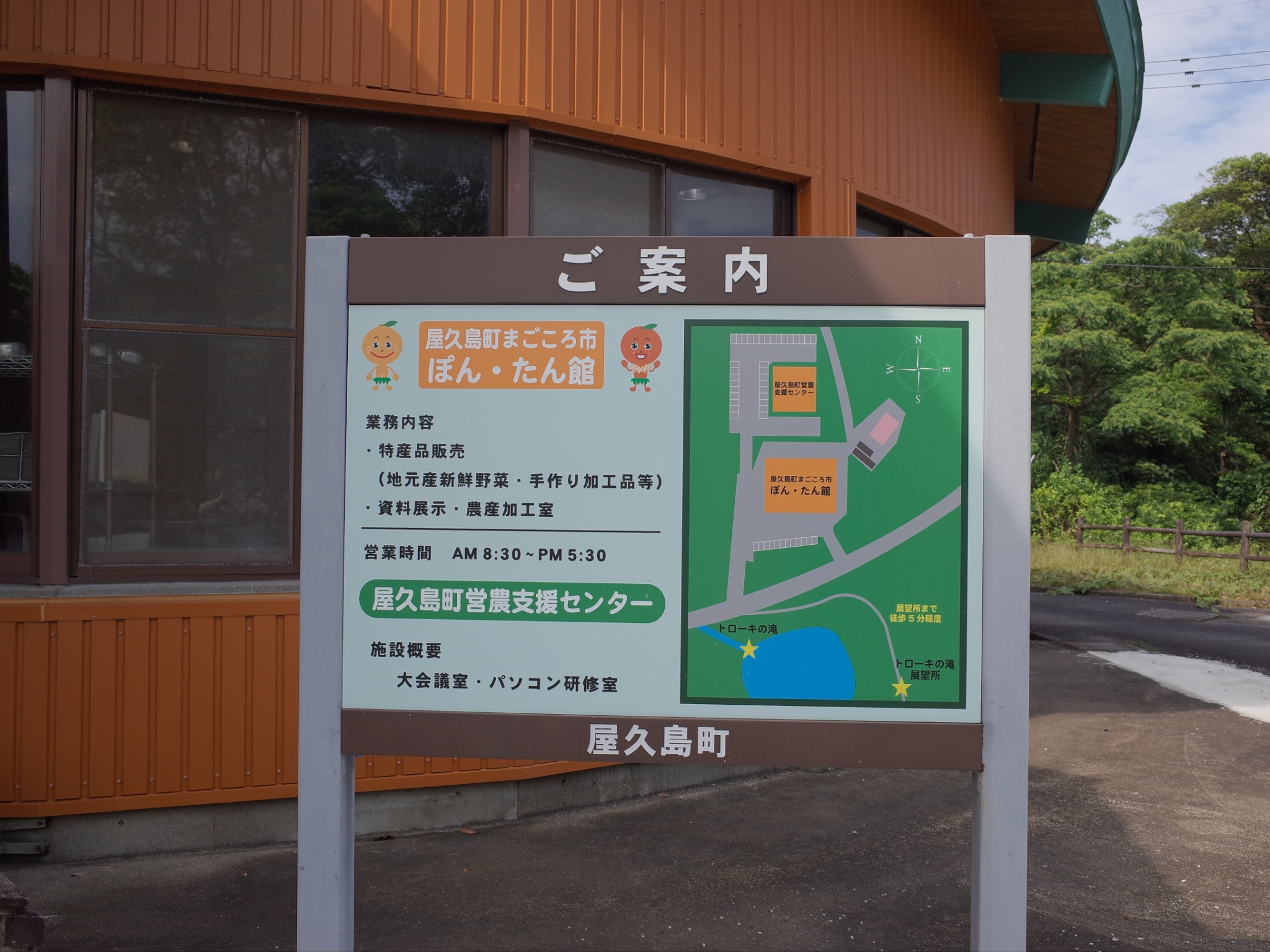 「トローキの滝」へは、屋久島町まごころ市「ぽん・たん館」