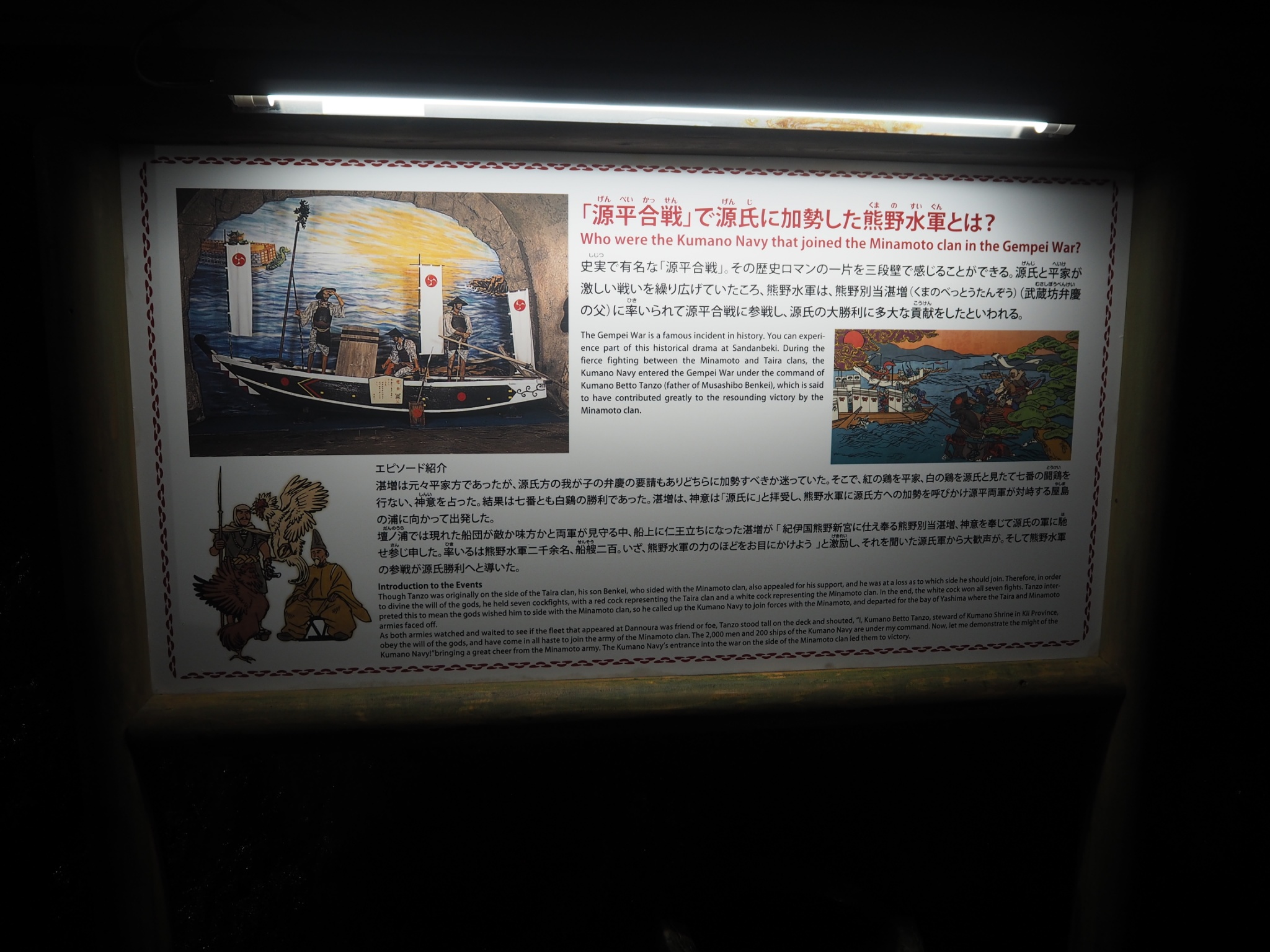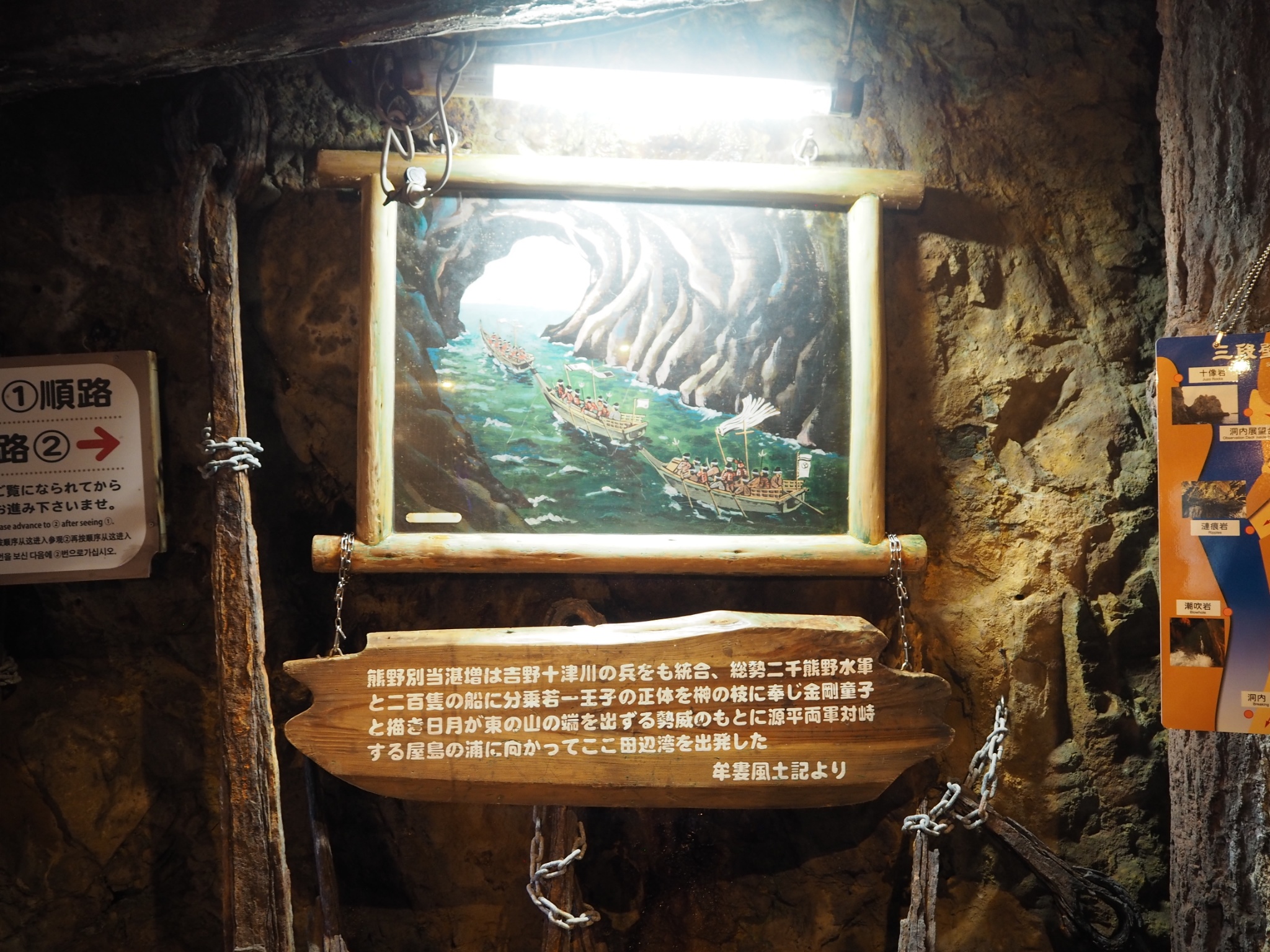 「三段壁洞窟は熊野水軍の船隠し場だったと言われています。」