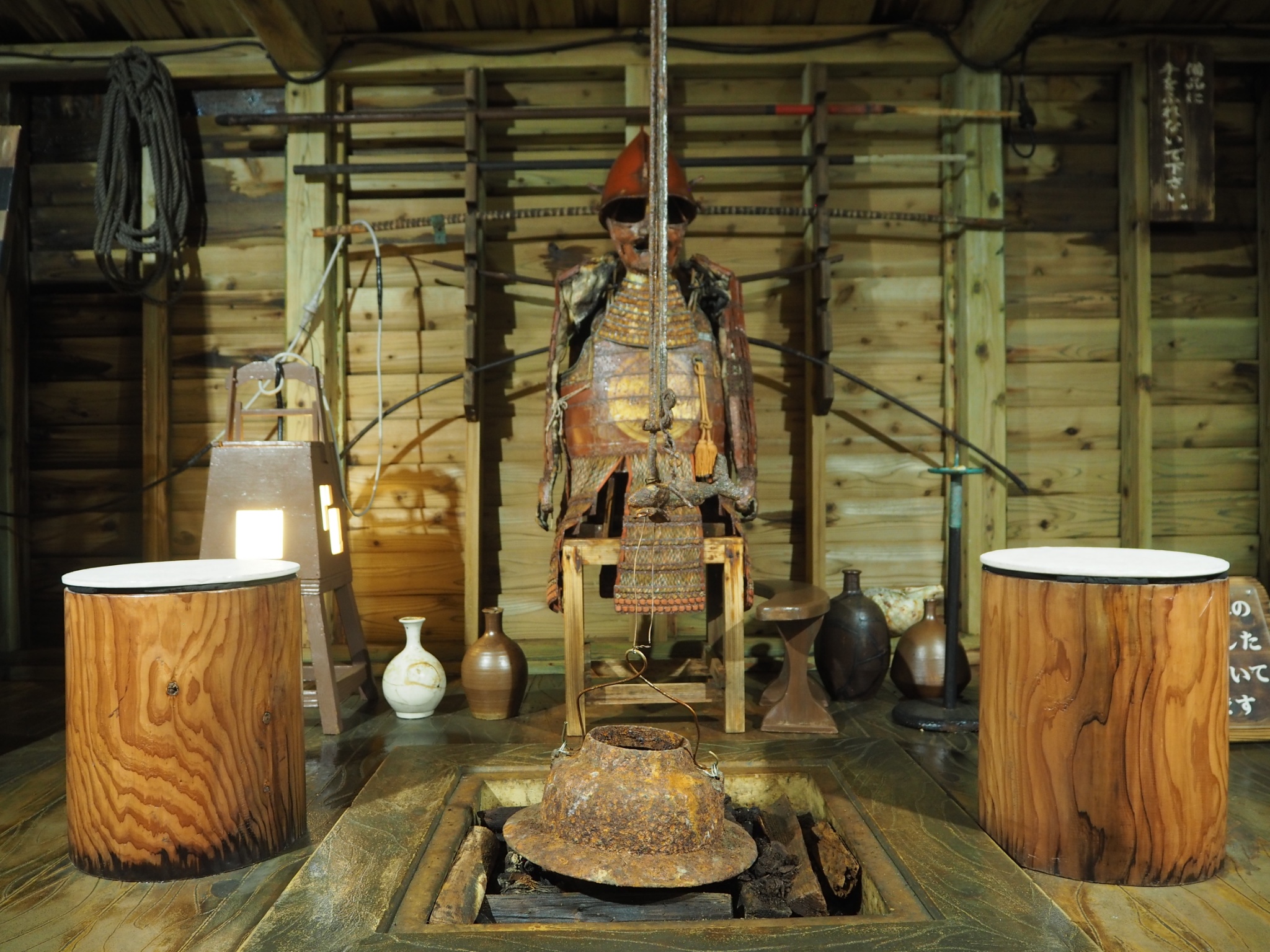 「この小屋は熊野水軍の戦いに待機休憩した小屋を史実に基づいて復元したものです。」