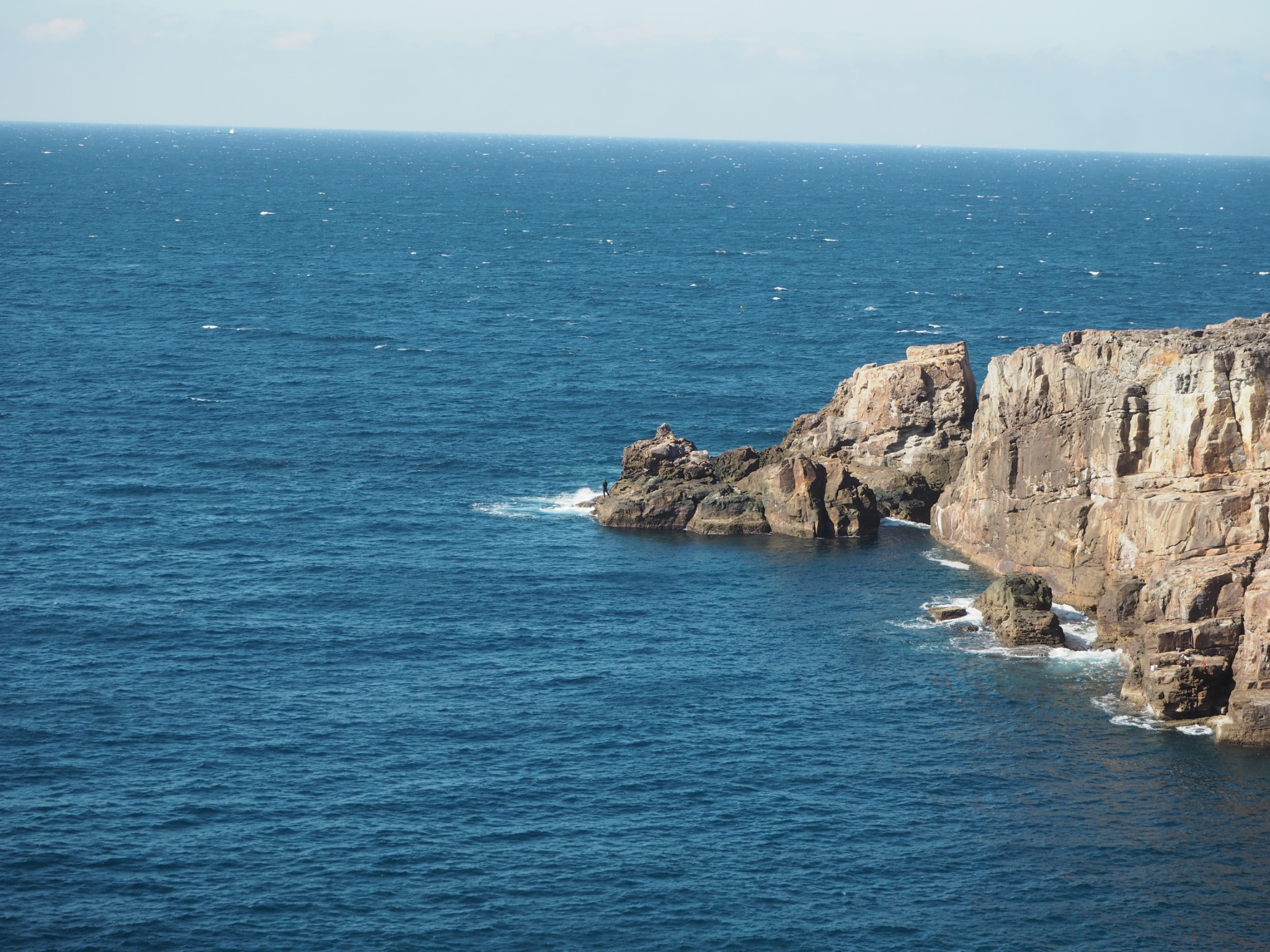 ところで、あんな岩の先端に釣り人?らしき姿が見える。