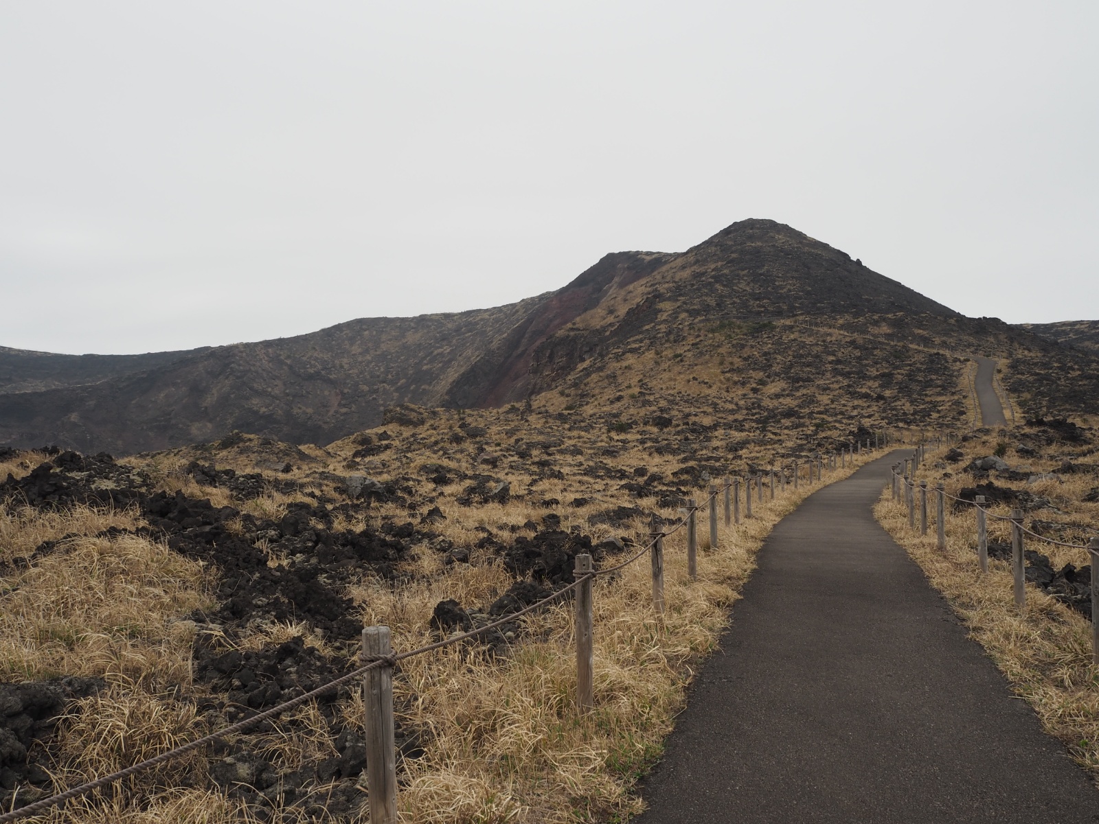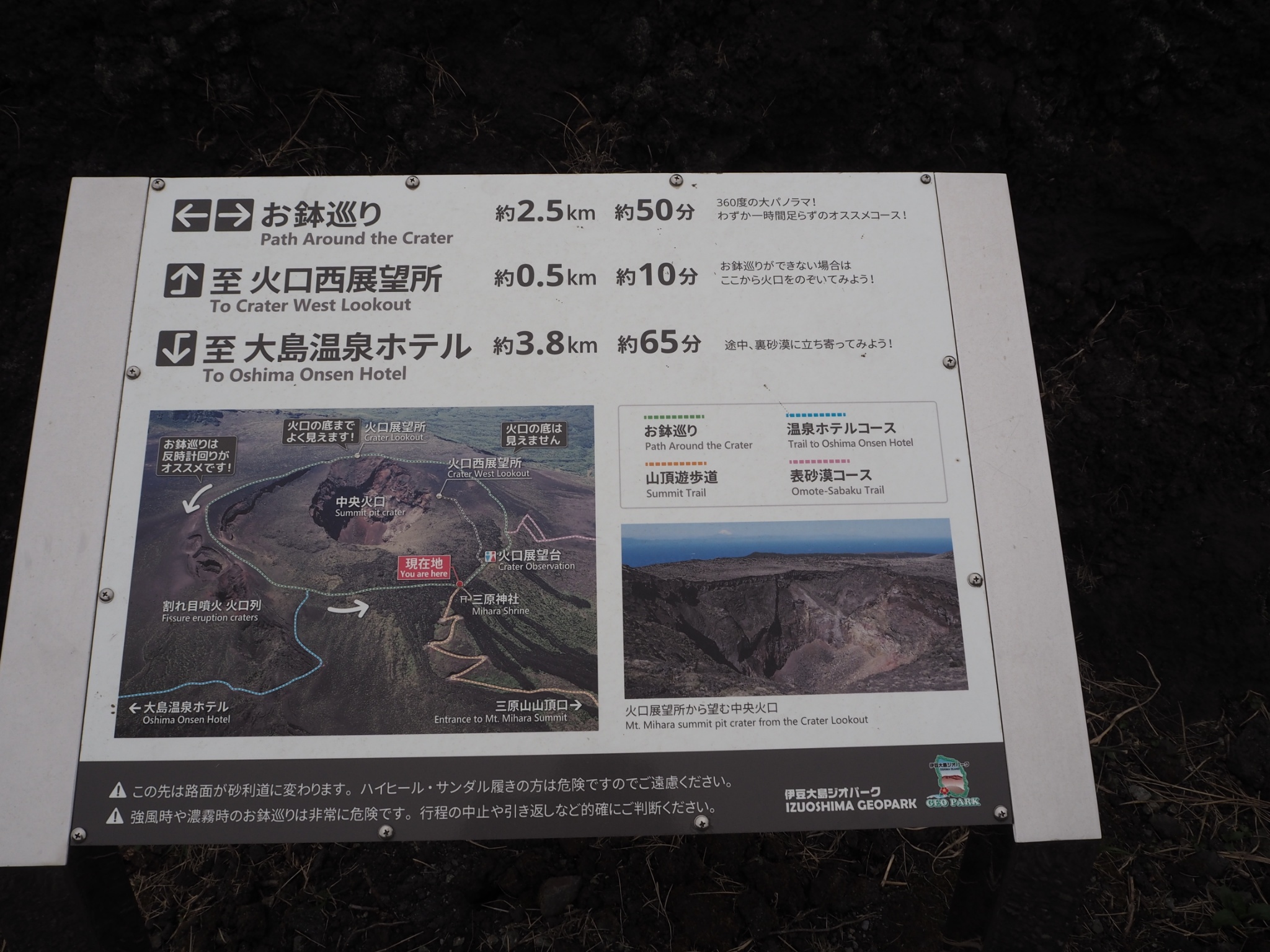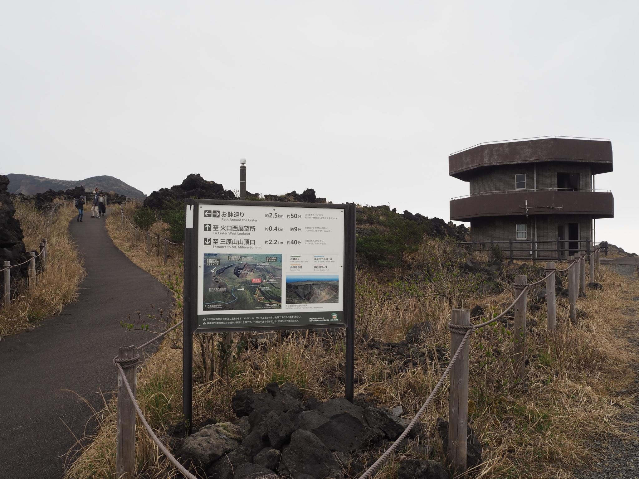 火口西展望所への分岐点は頂上展望台のすぐ横だった。
