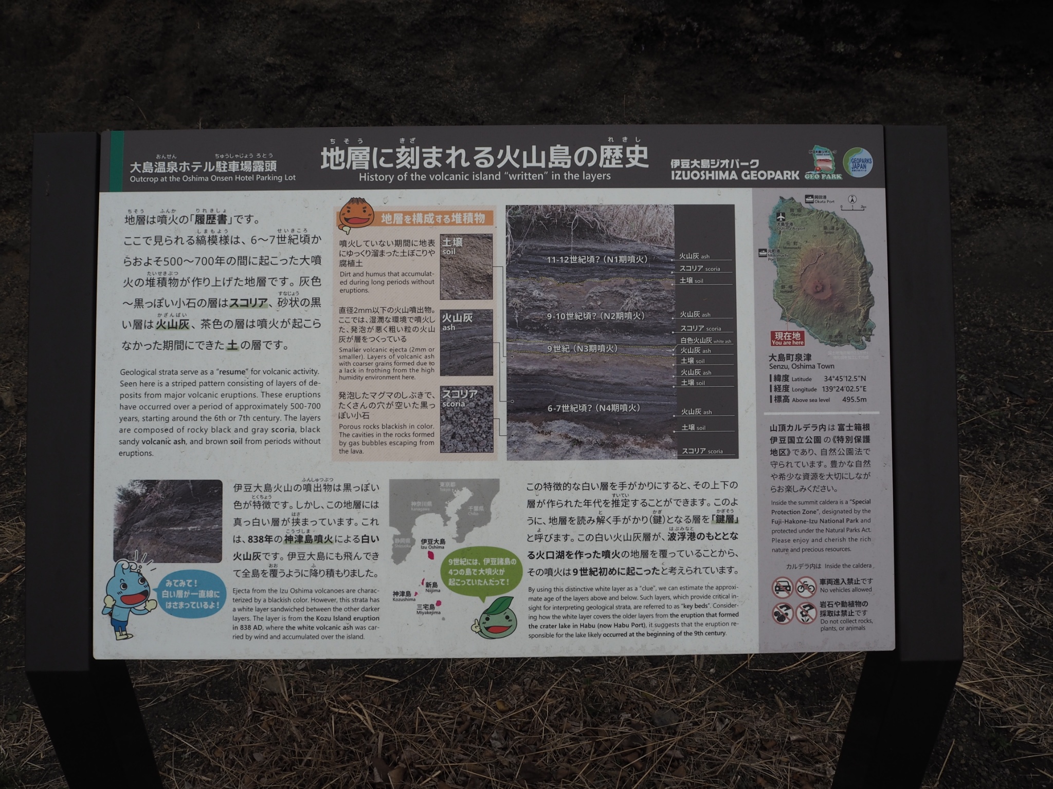陸地(島)にあちこちの火山灰が降り積もってできたものらしい。