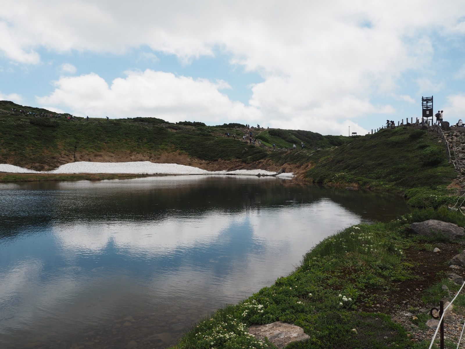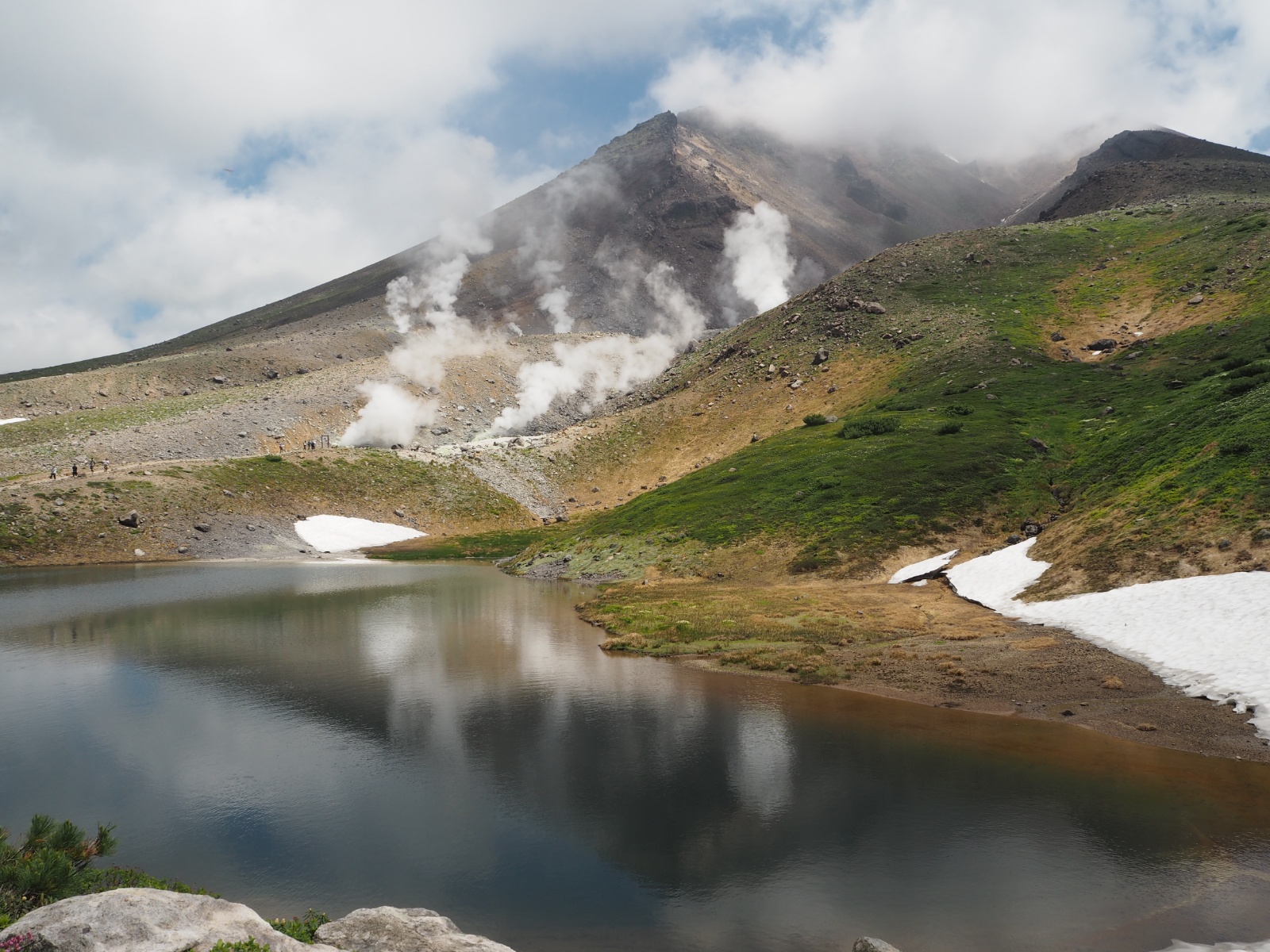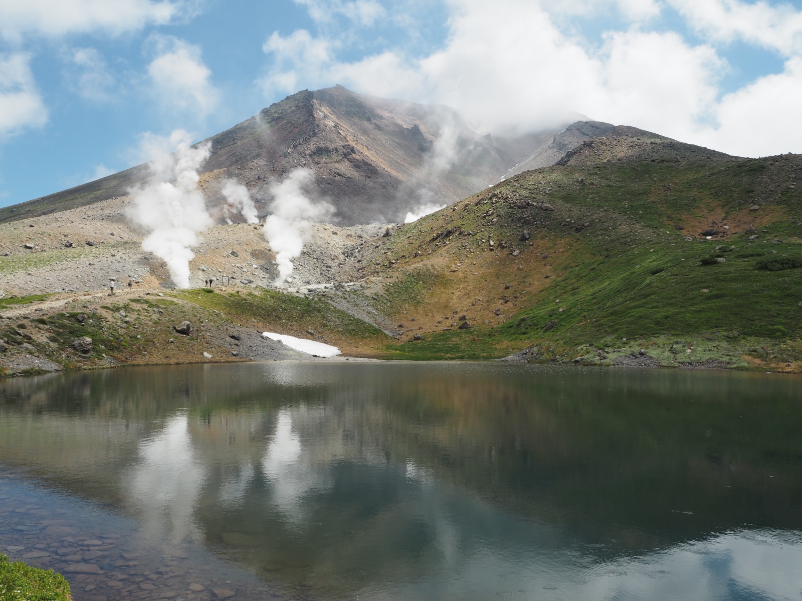 下山の前に、もう一度「姿見の池」に映る「旭岳」の雄姿を拝んでおく。