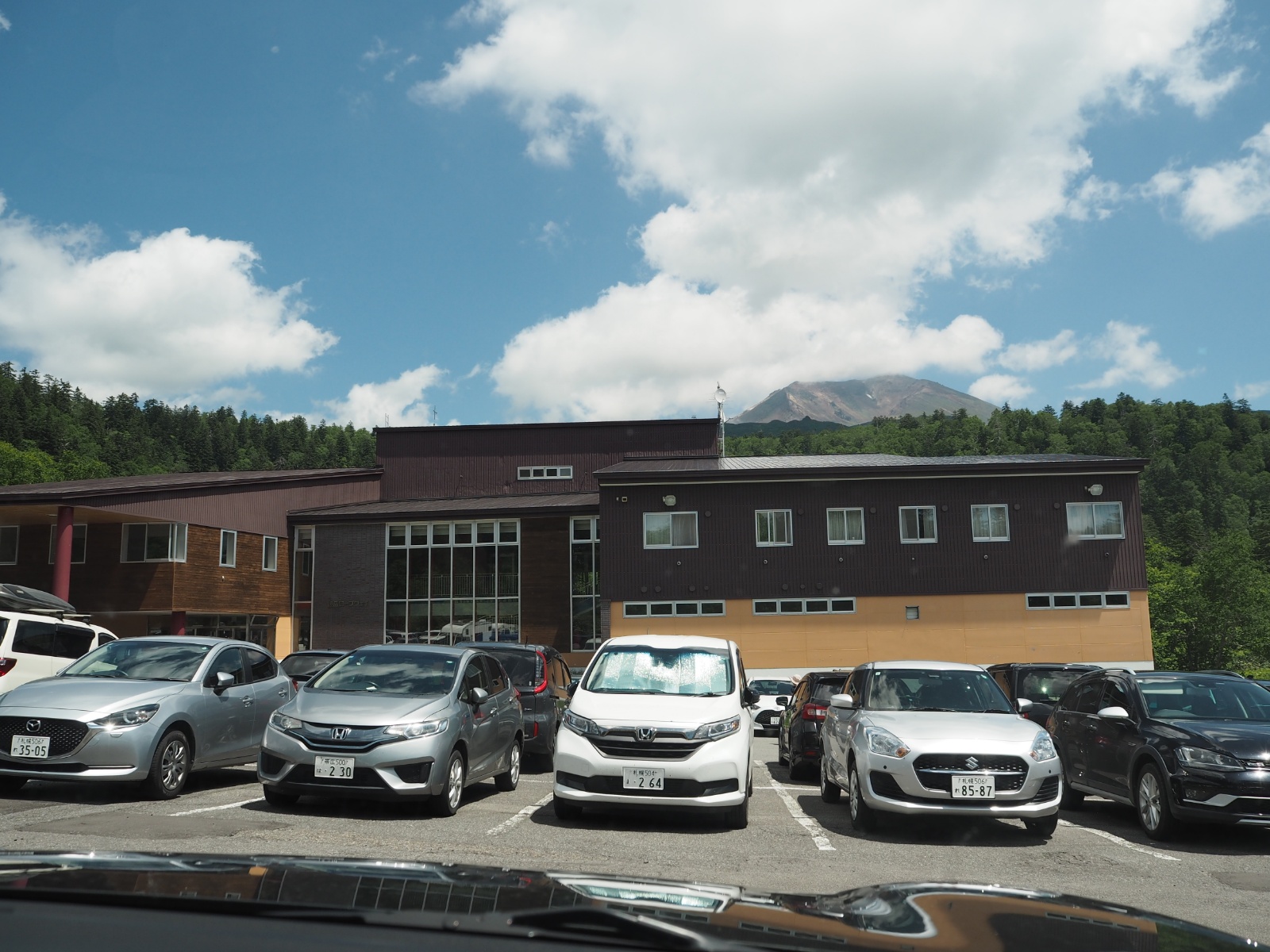 今日、この後行く予定の十勝岳が右の方に薄っすらと見えた。