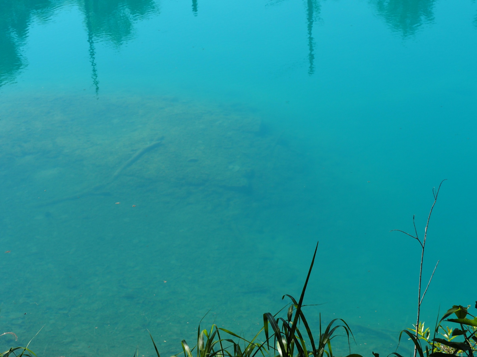 温泉成分が混じっているから、透明度はそれほど高くない。