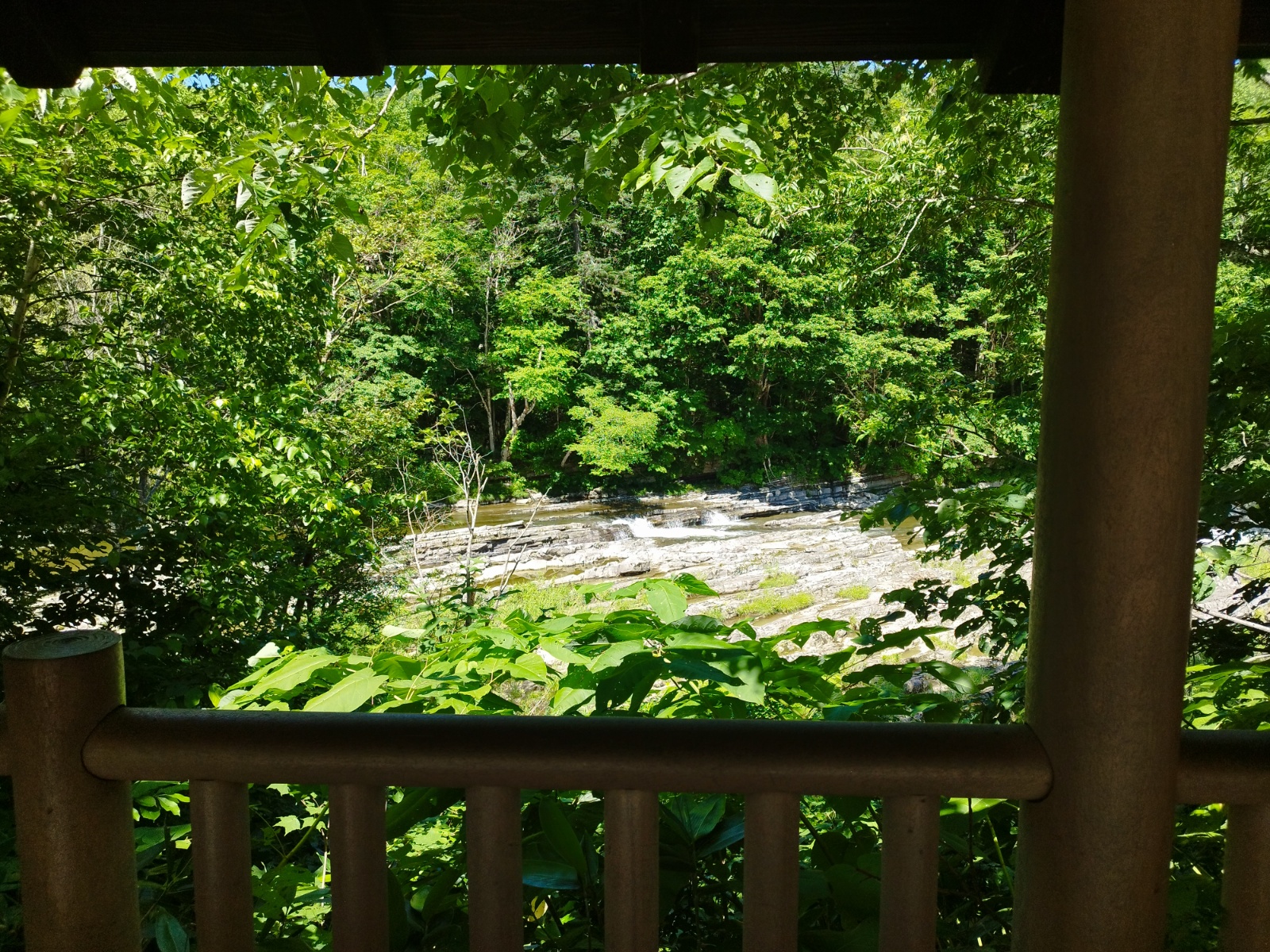 駐車場のすぐ横にある東屋から見えるのは「三段滝」ではないようだ。