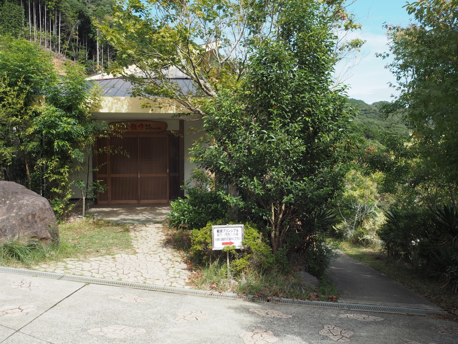 男湯は女湯の右横を通り過ぎて、もう少し向こうだ。
