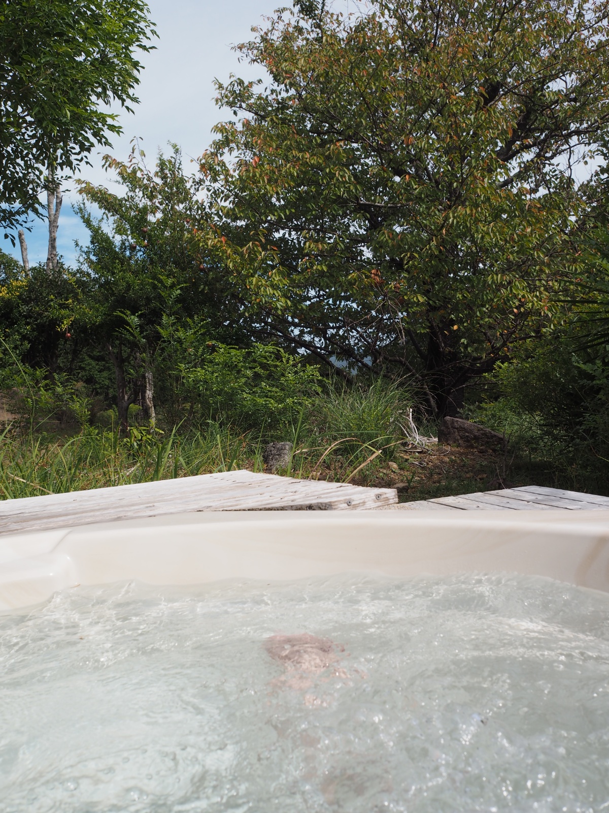 (かけ湯だけして)内湯は素通りし、いきなり露天風呂へ浸かる。