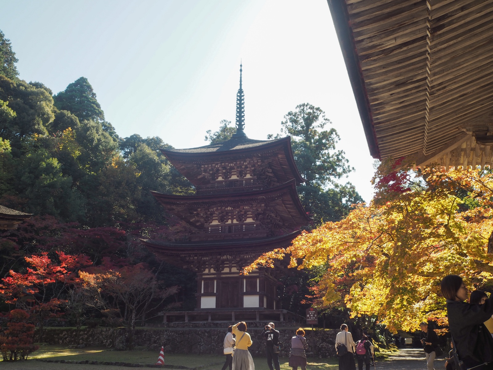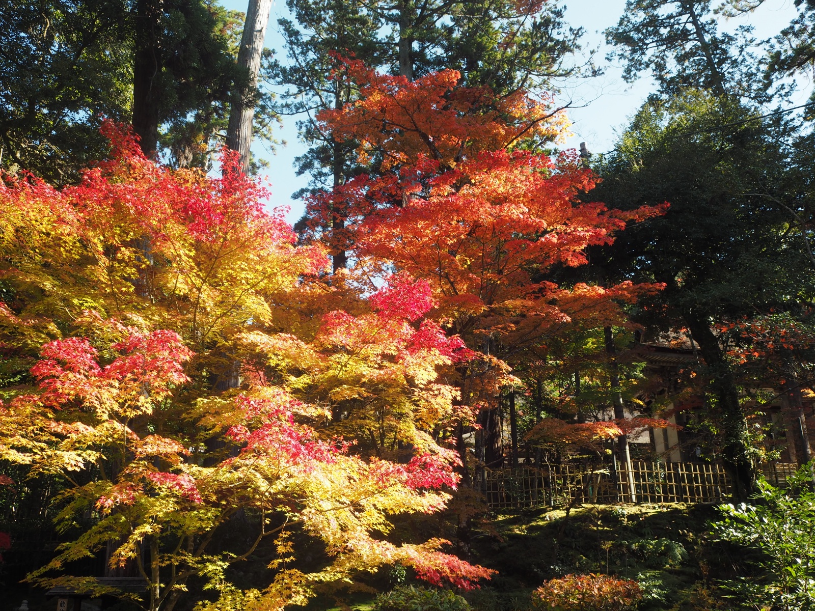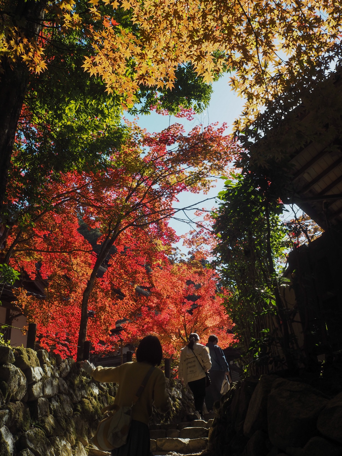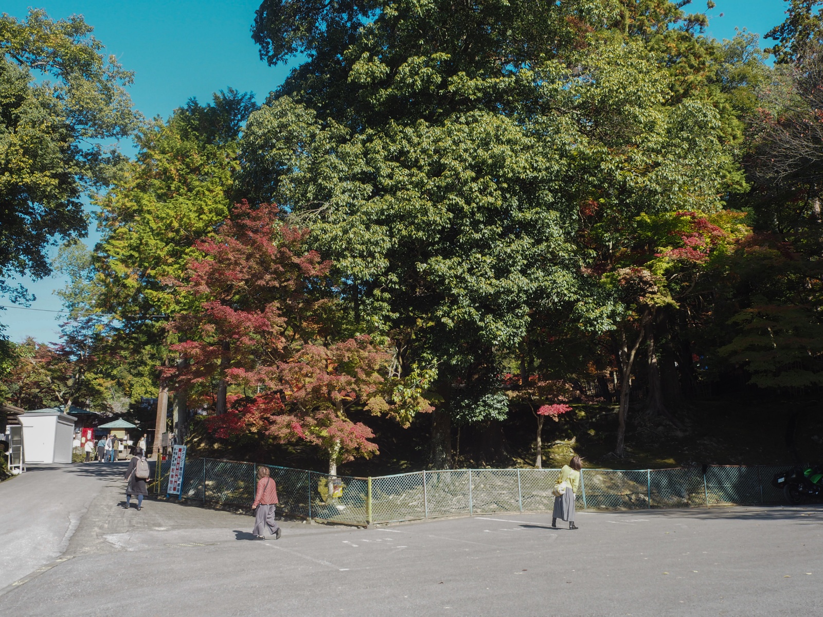入口からさっそく紅葉のグラデーションがチラっと見える。