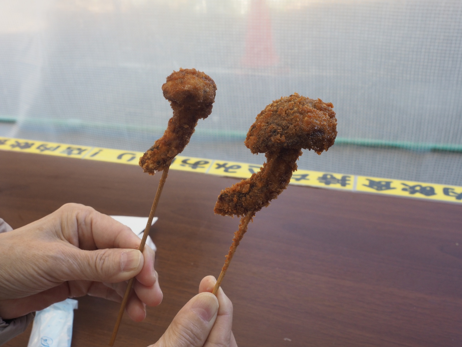 左が 1串(1口サイズ) 400円、右が 1串 500円だ。