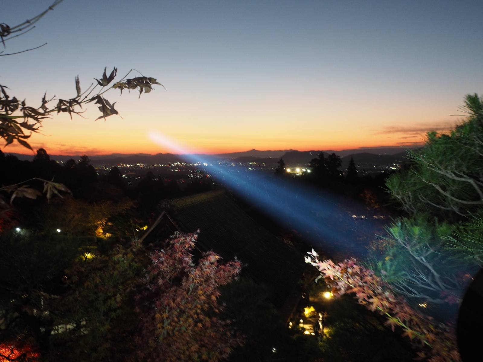 遠くに夕焼けが見えて、ここのライトアップも見事だ。