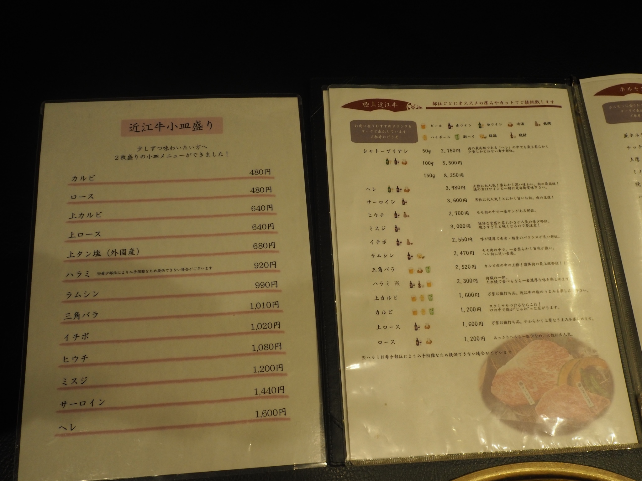 有名な近江牛専門店だけあって聞いた事もないような部位も揃っている。