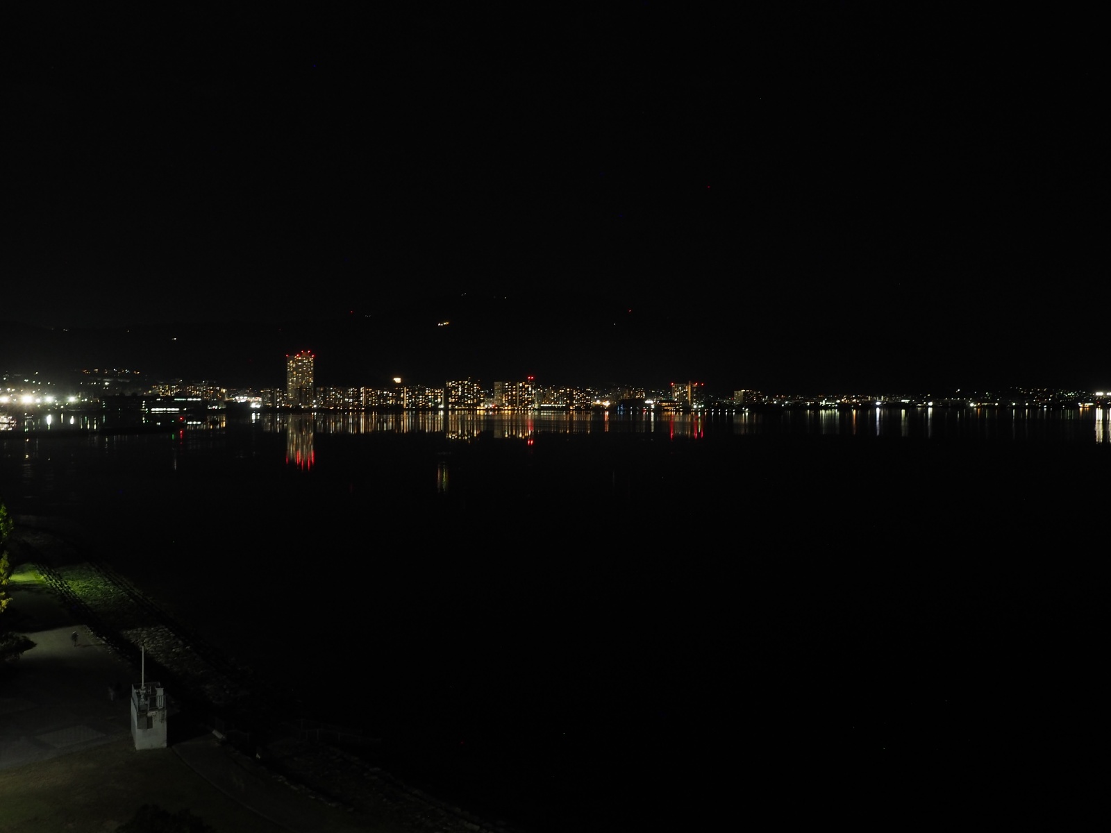 窓からは琵琶湖の夜景が見える。
