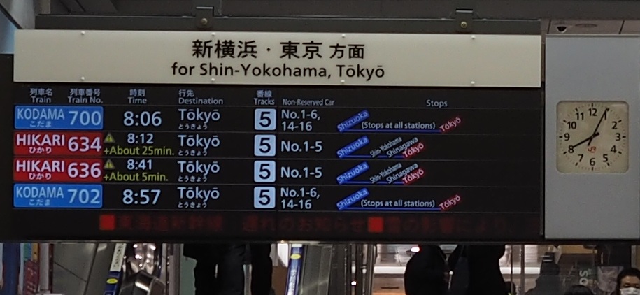 相変わらず雪に弱い東海道新幹線が25分遅れている..