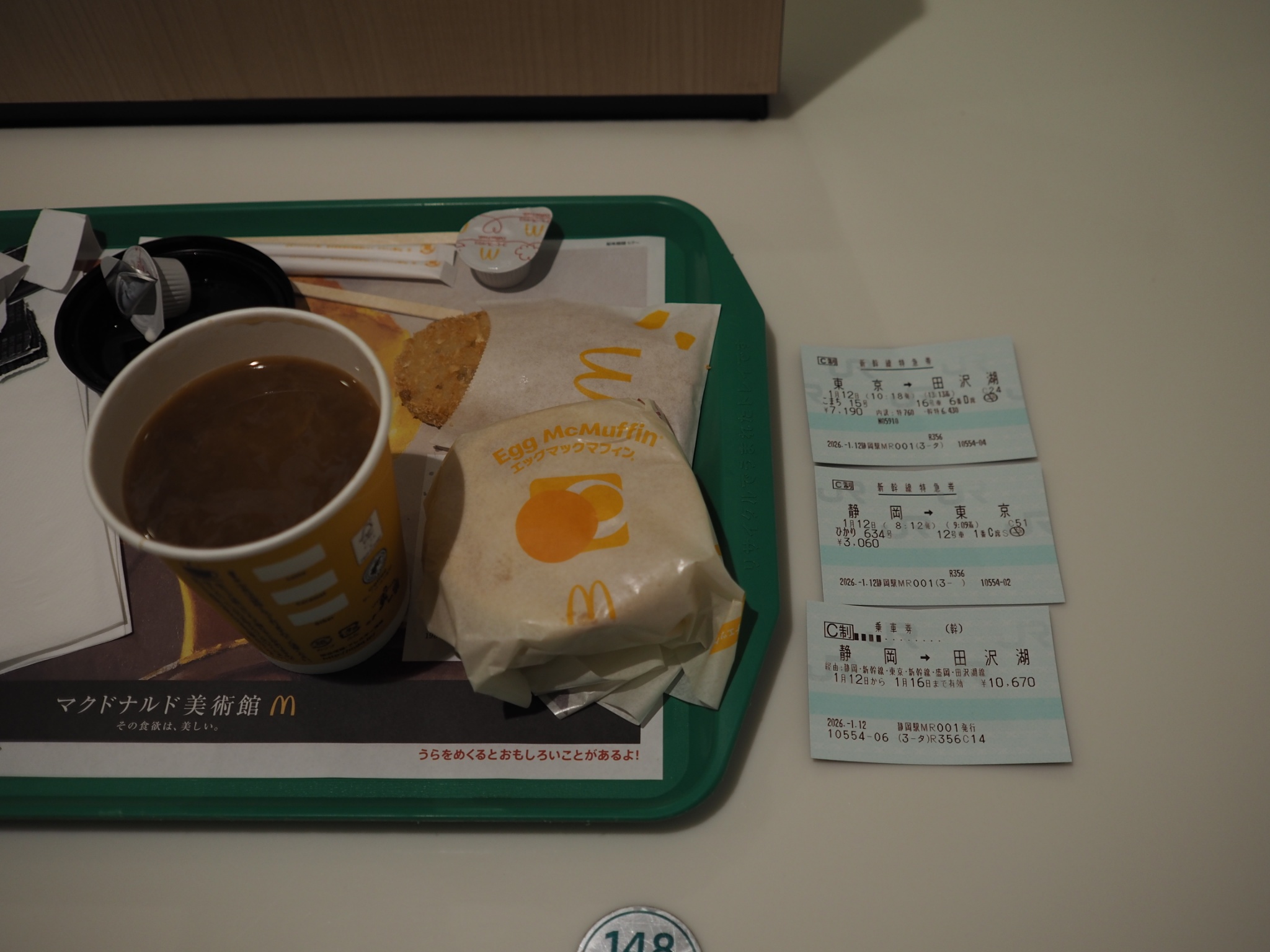 8:12の新幹線ではあるが25分遅れているので、朝マックを食べる時間ができた。