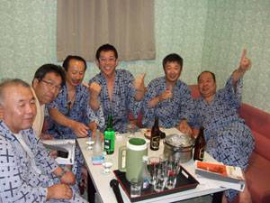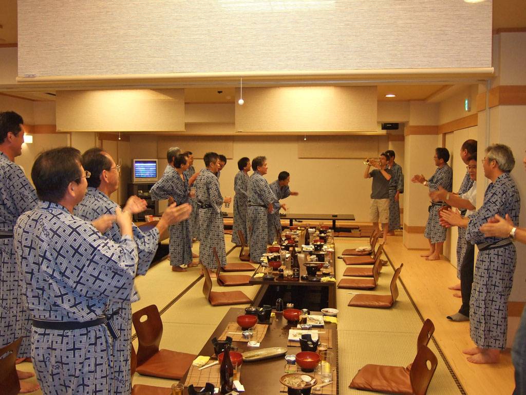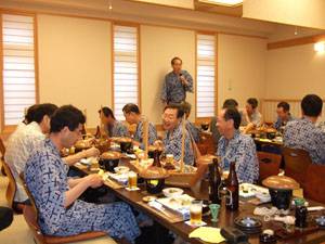クタクタでとみよしに戻り、温泉で汗を流して浴衣に着替える。