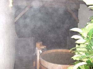 ちょうど12時頃、海霧がたちこめて幻想的な雰囲気の屋上露天風呂。