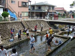 今回は解散後、とみよしから徒歩5分の川でマス釣り大会が有り、有志4名が参加しました。