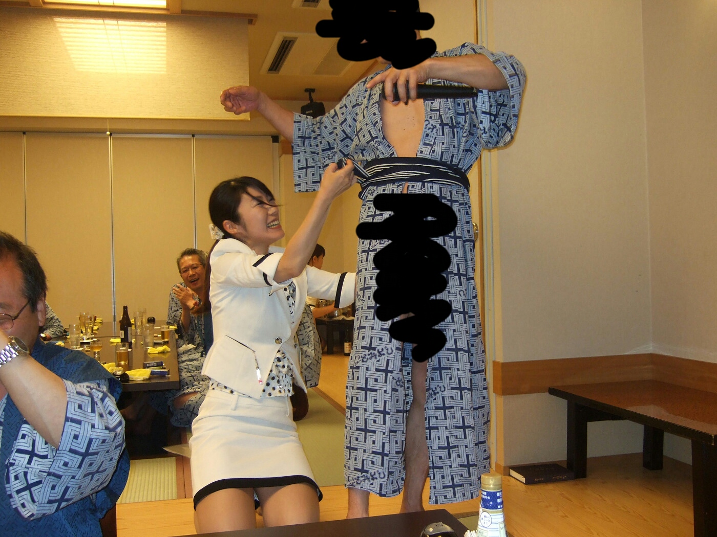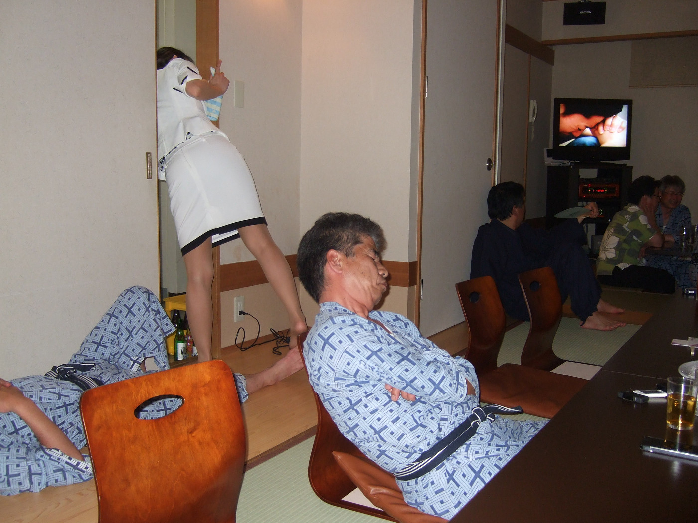 こっちのお姉さんも、田○君みたいに腰に靴下を挟んでいる…