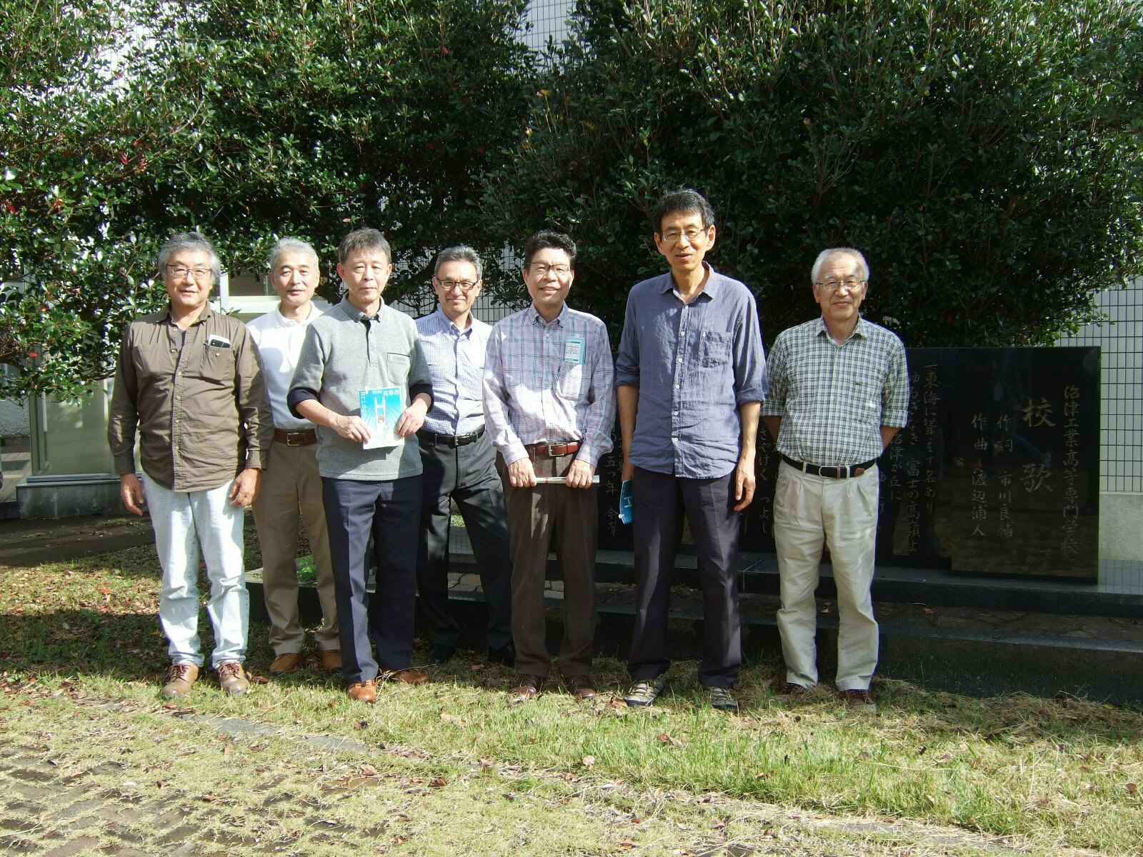 図書館の前で、車で来た人たちと合流して記念撮影。