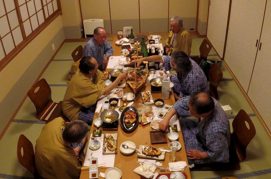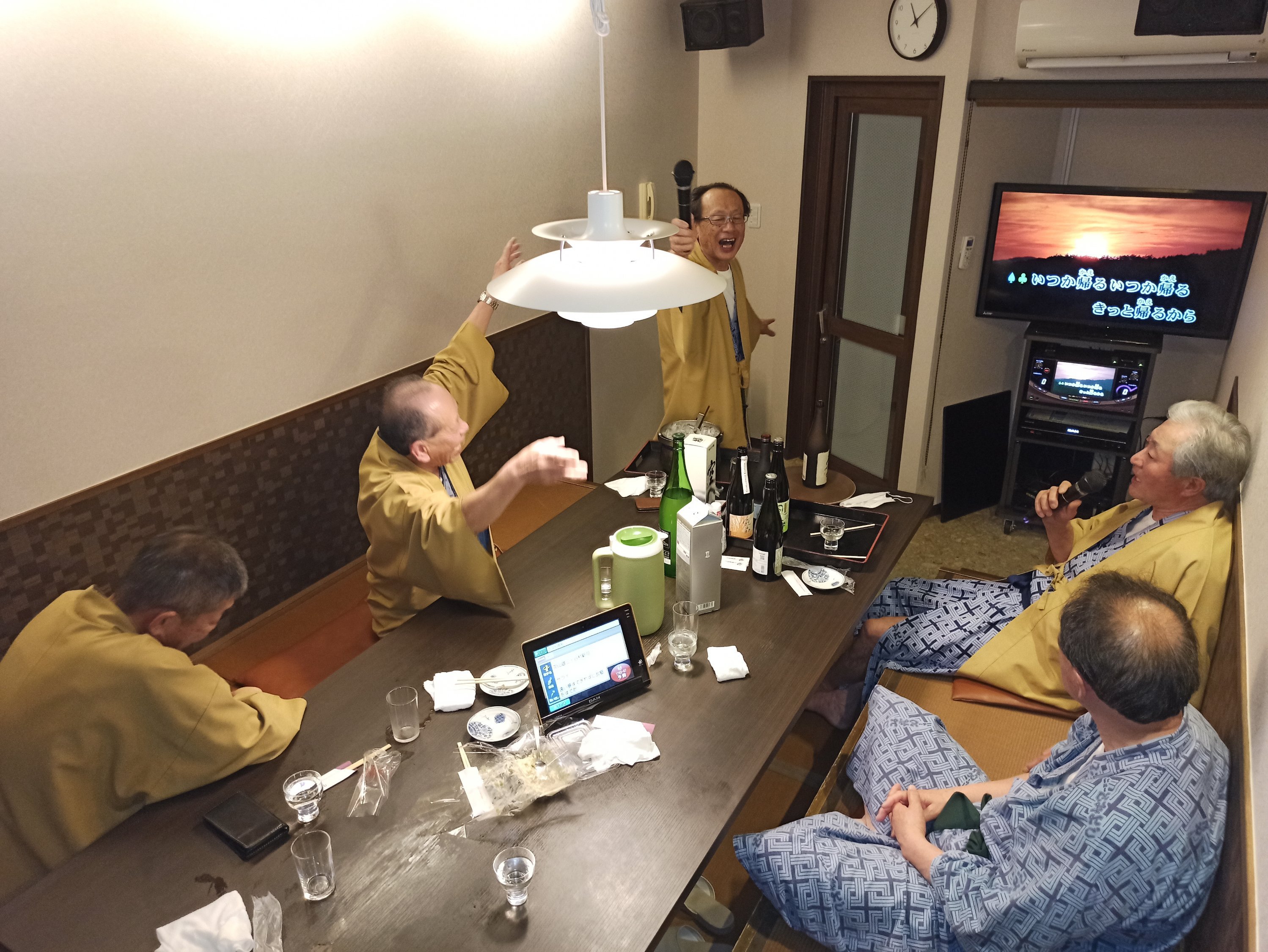 温泉でアルコールをリセットしようとする参加者たちであった。