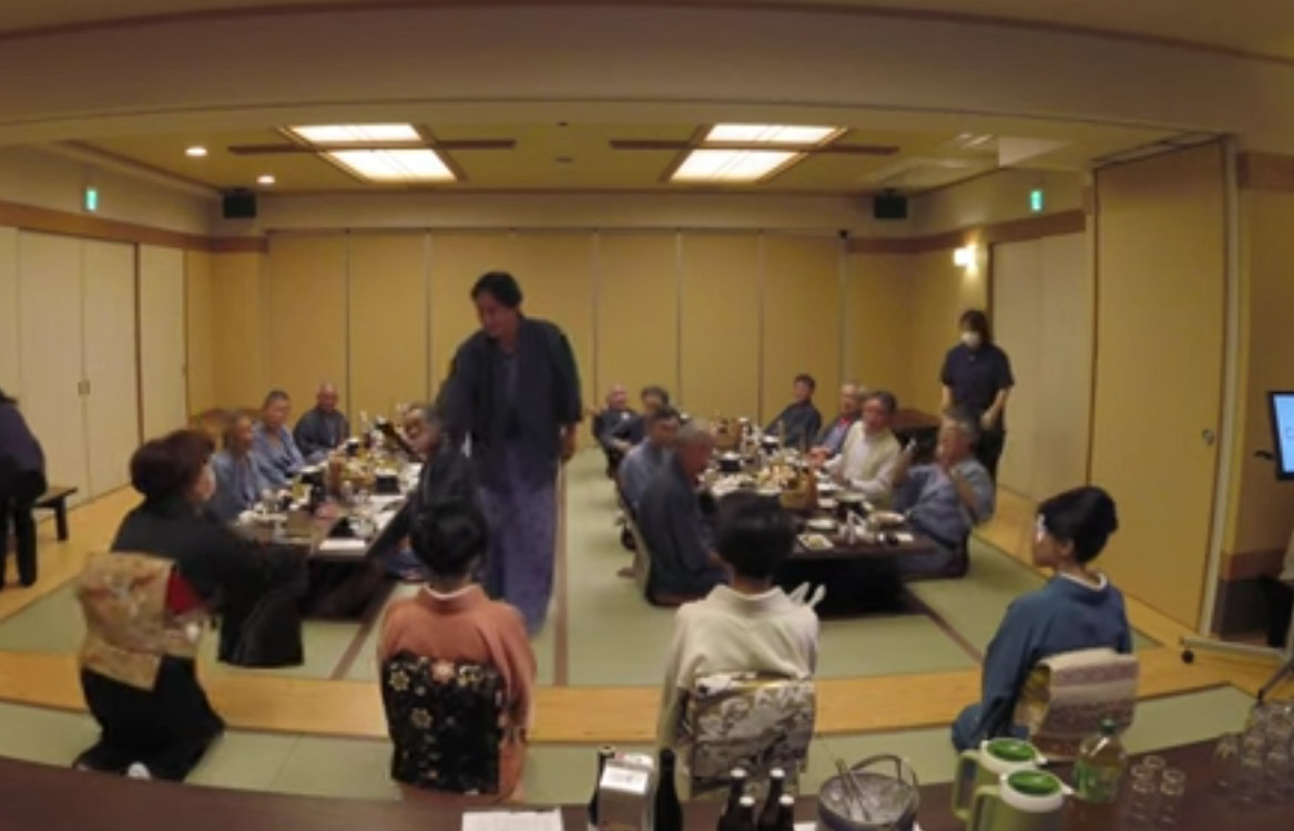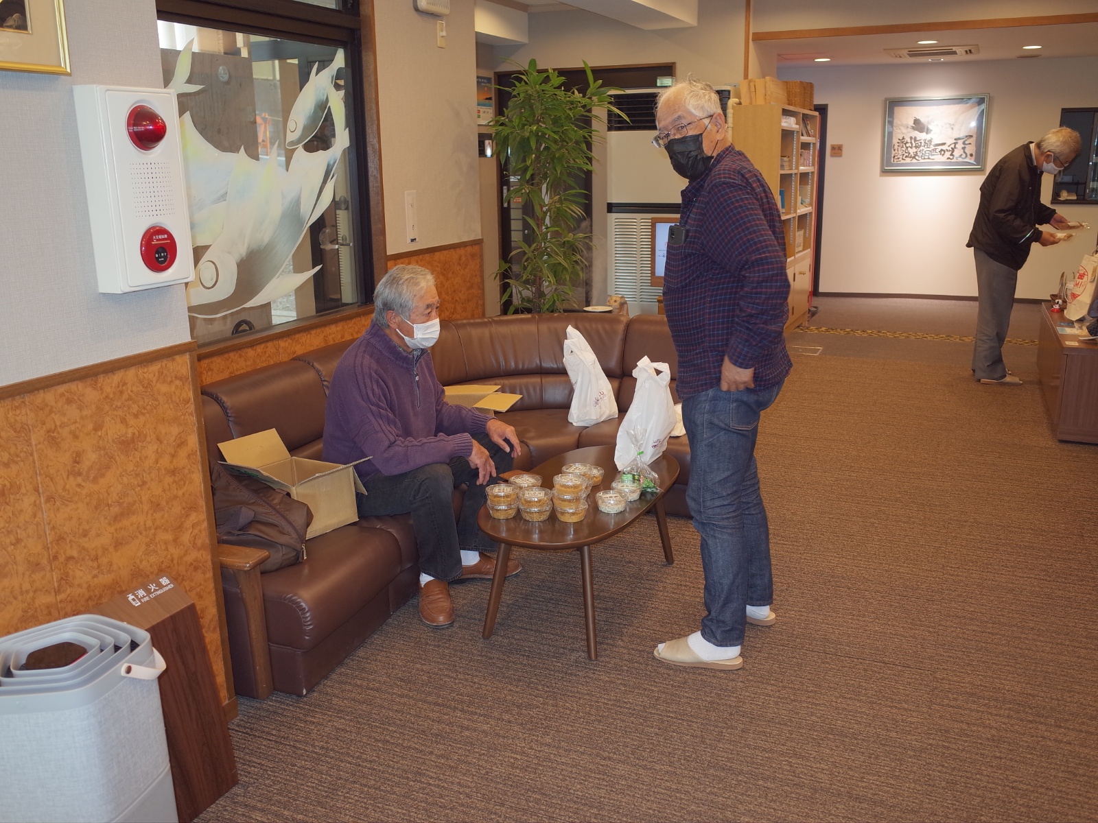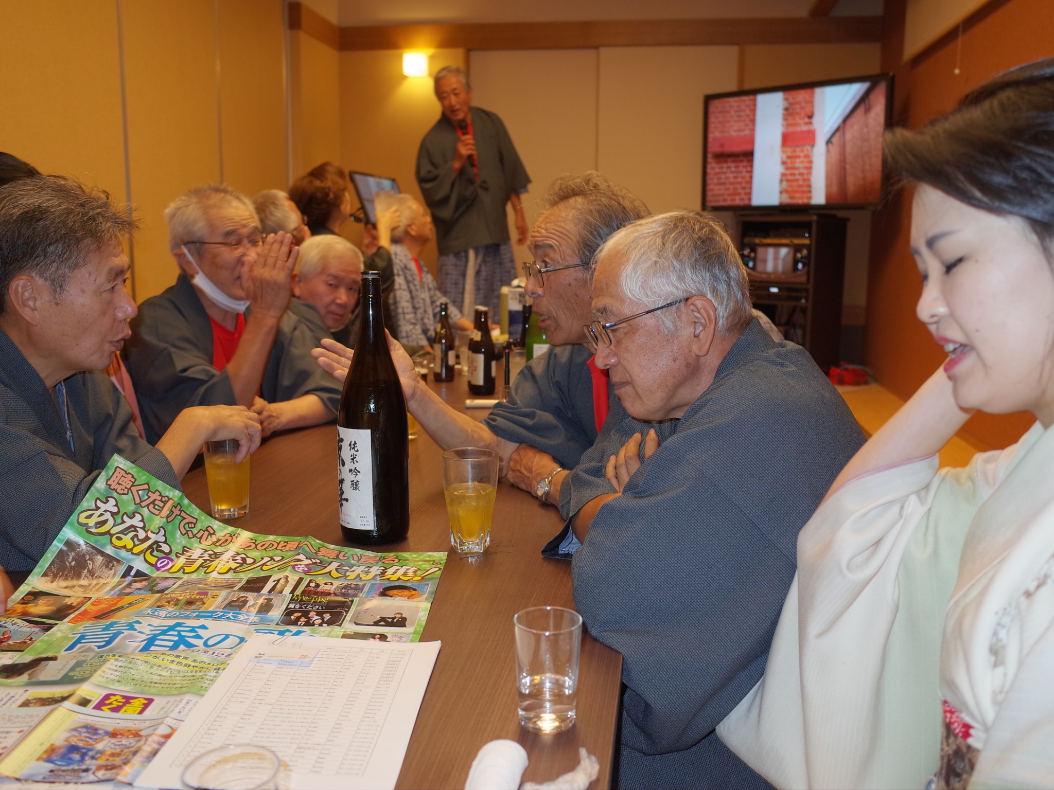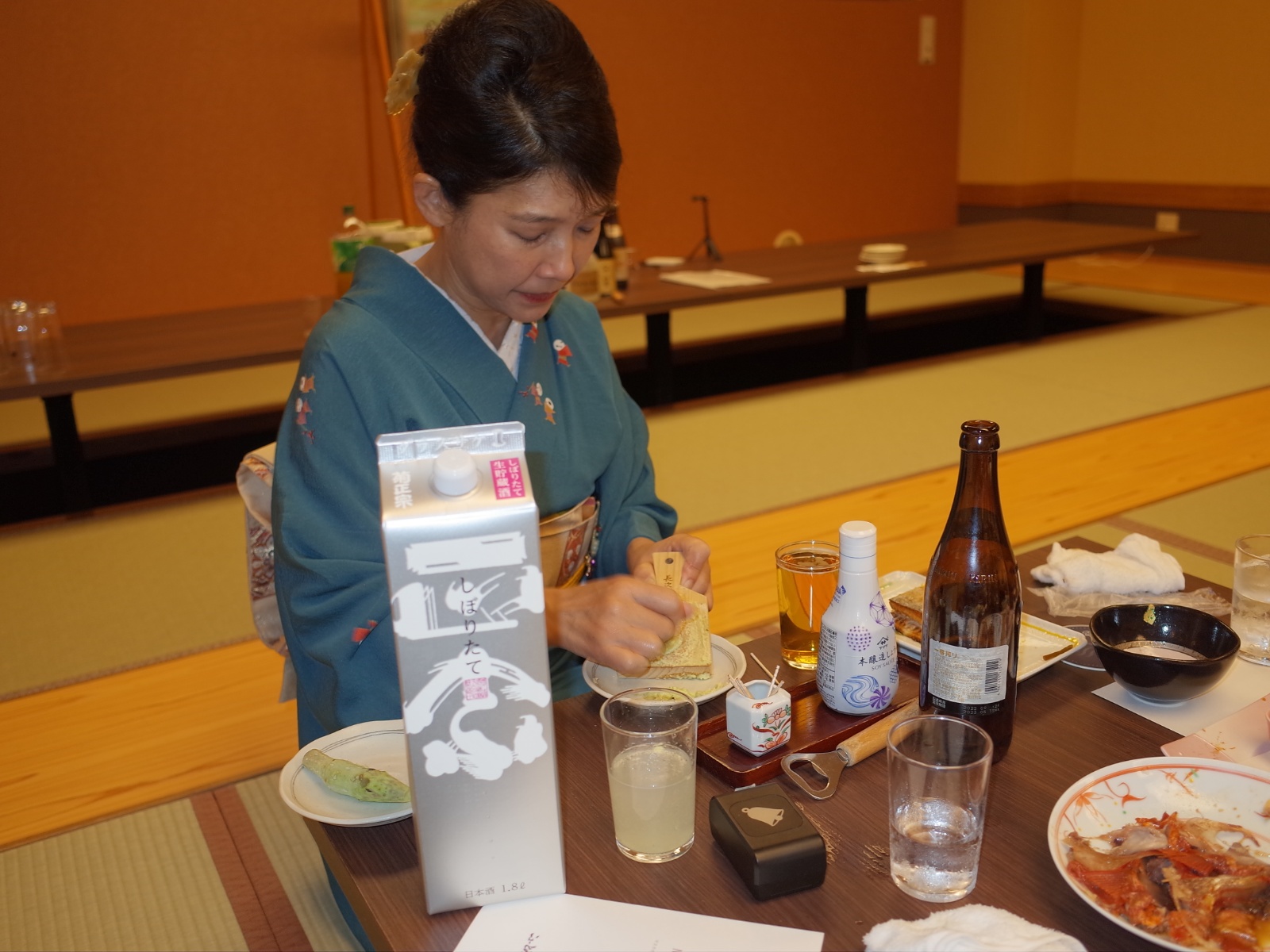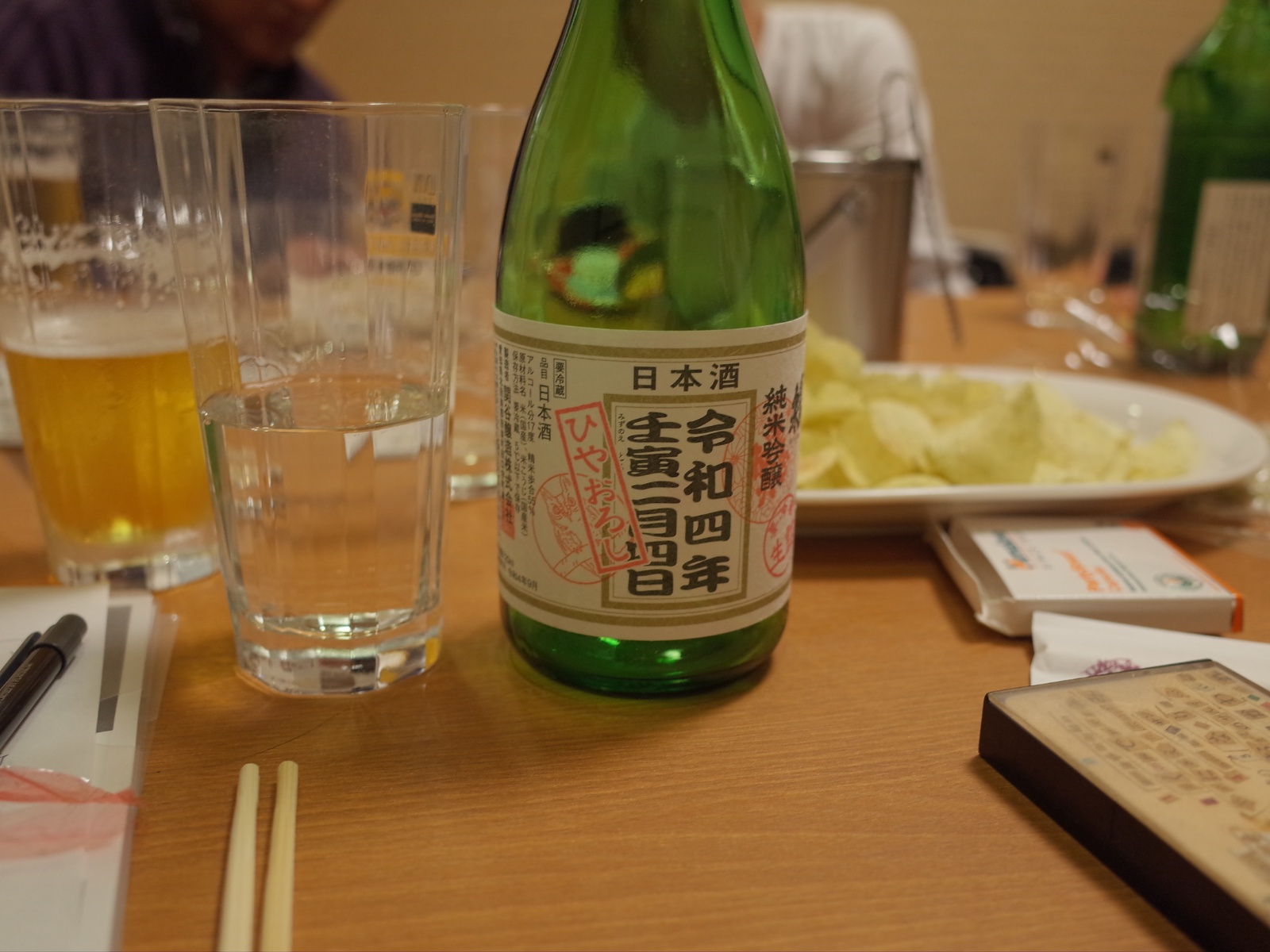長〇〇社長差し入れの蓬莱泉立春朝搾りで乾杯