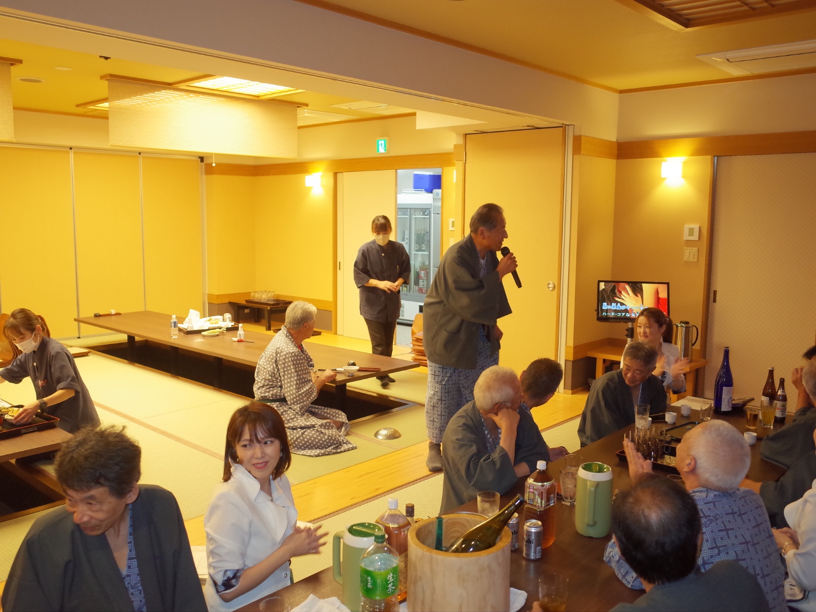 篤美社長は自らビールを運び、大忙しだ。