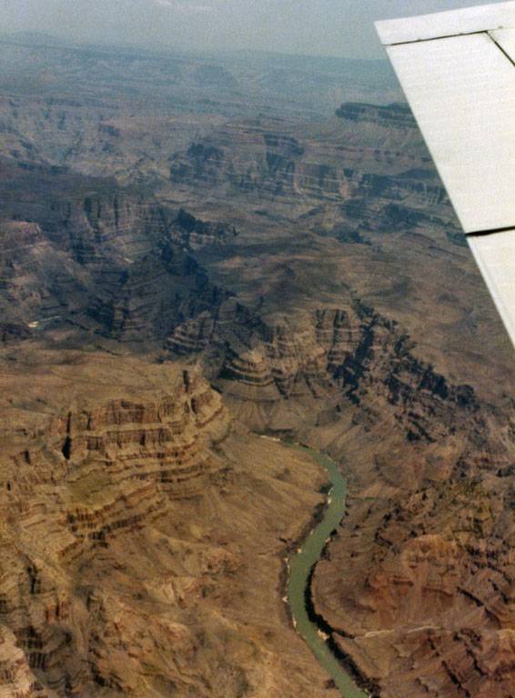 砂漠の上を飛びつづけて、やっとグランドキャニオンが見えてきた。