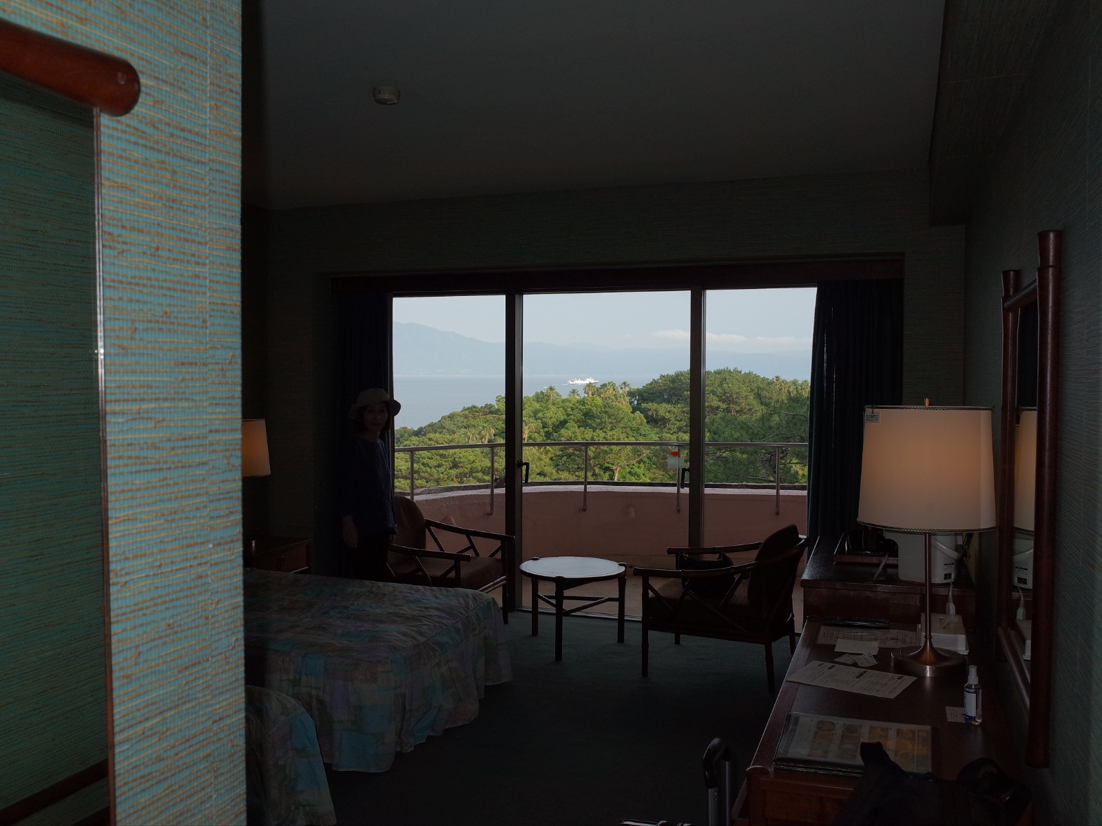 客室は、まあ普通の洋室だが、ベランダの景色は抜群だ。