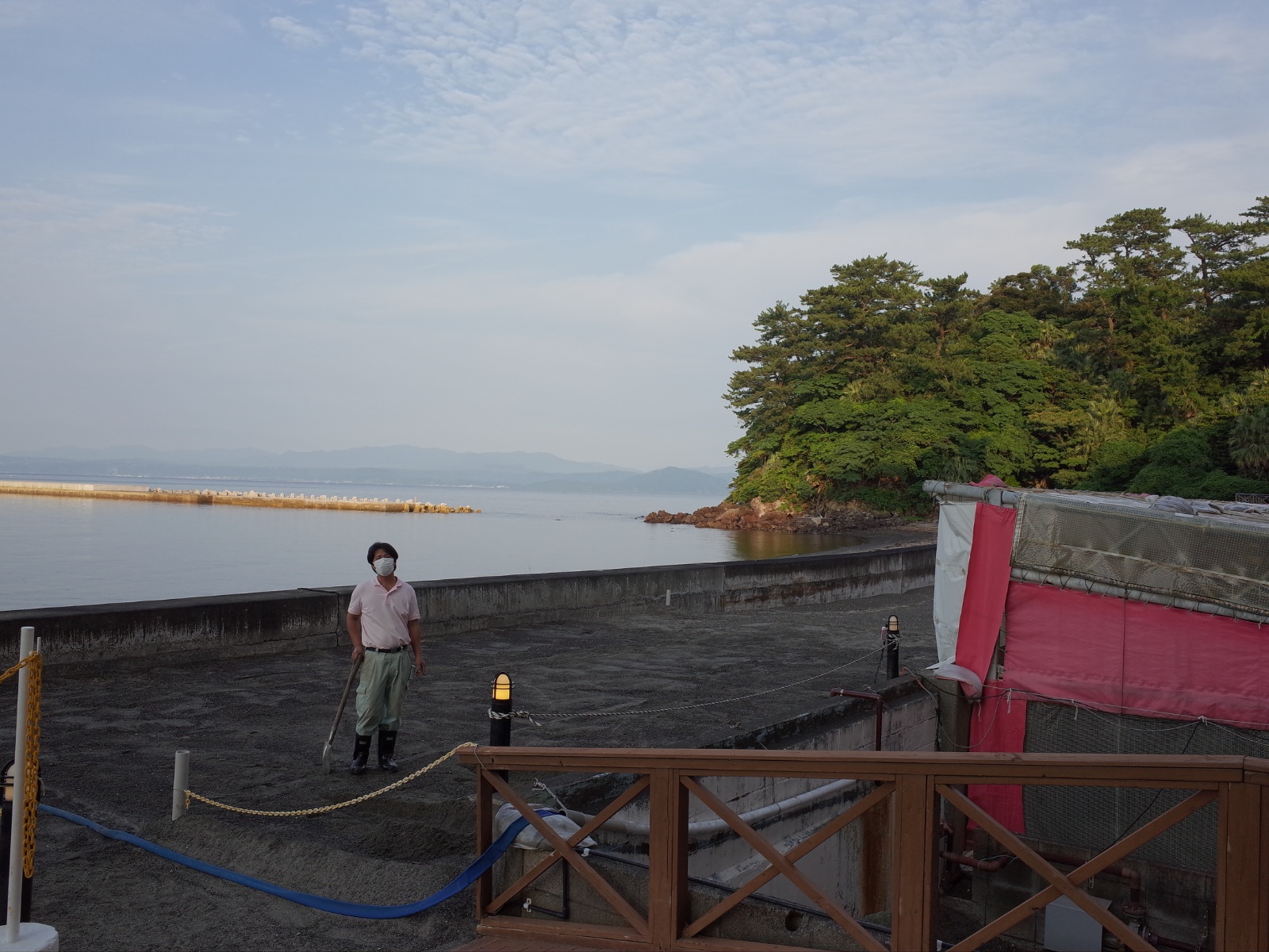 砂蒸し場ではフロントから連絡を受けた係員さんが待ち構えている。