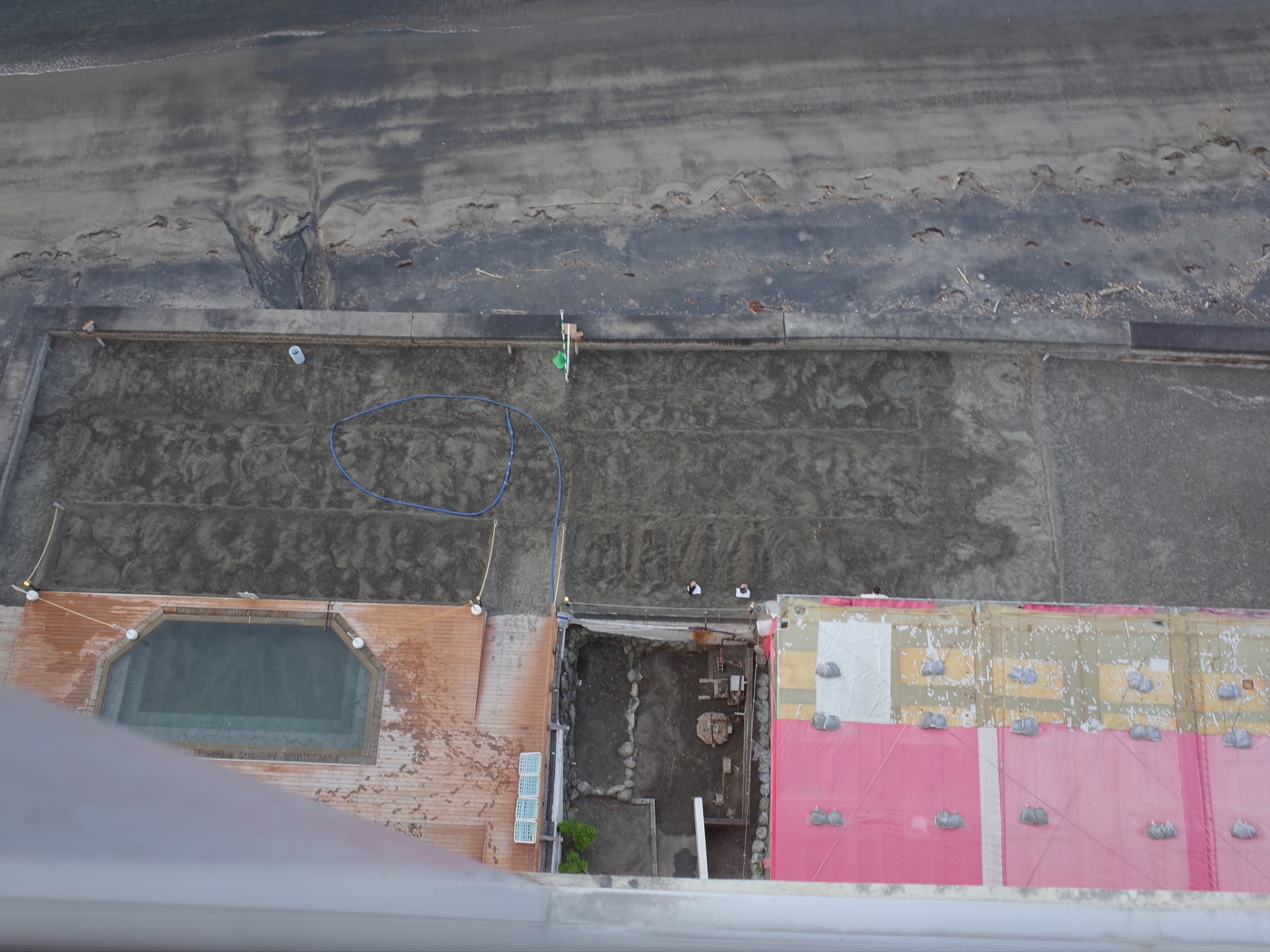 空中温泉の窓から、下にさっきの砂蒸し場が見えた。